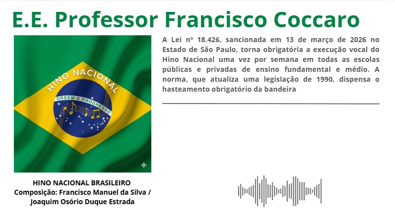 Sala do Futuro Atenção : Informação Importante Hino Nacional Assista o Vídeo Ler o QR Code Clique aqui Gerar o QR Code Clique aqui Conheça o Grêmio Estudantil Quatro ações do Coccaro para você poder estudar. Vídeos Assista as Produções dos Alunos . Ver Vídeos Sua Página Acesse as informações para você! Sua Página Informativo Veja as atividades da escola desde 2011 Informativo Recados Importantes